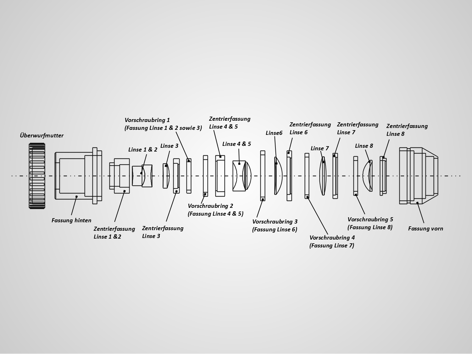 - Mittels eines Optikrechenprogrammes werden Anordnungen