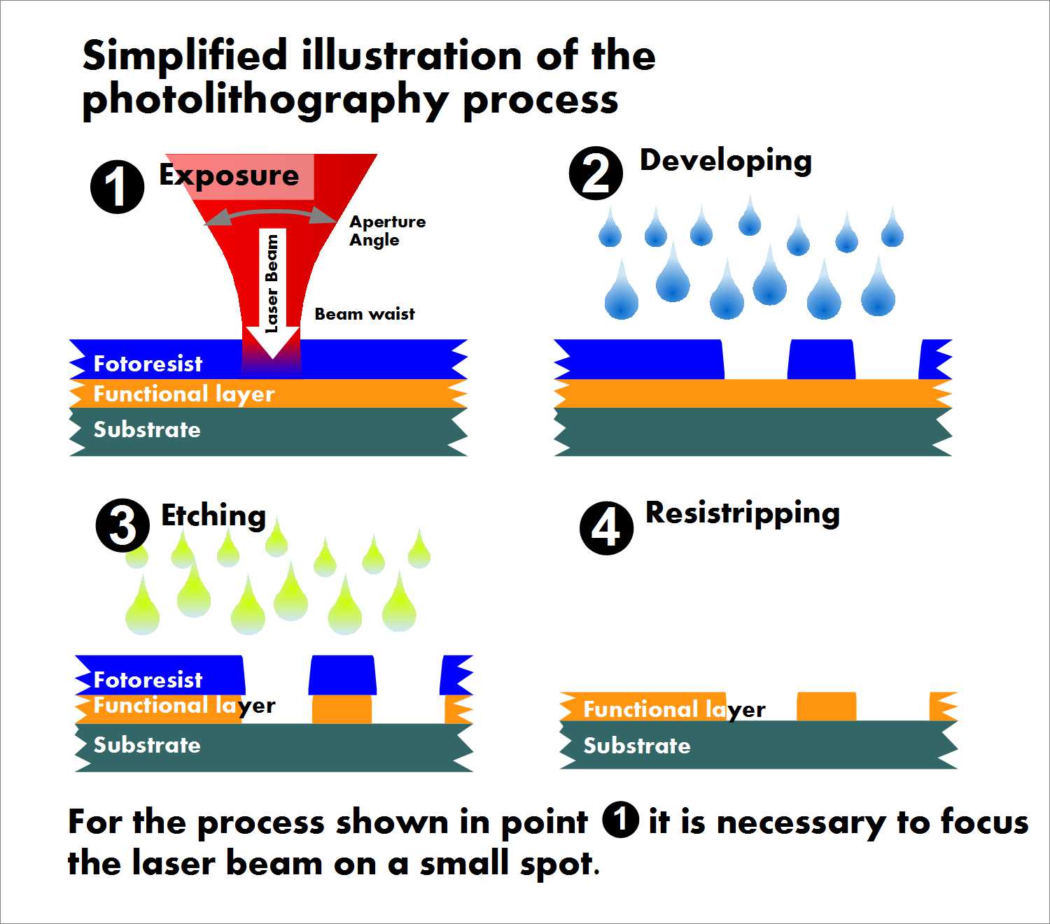 Laserstrahls auf eine lichtempfindliche Schicht (Photoresist) ein feines